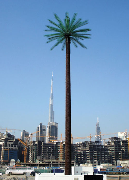 仿生树塔是通信行业用于伪装天线最常用树型之一,高10米~35米。树冠整体造型成宝塔状。 仿生树塔采用高强度的镀锌管塔为主杆,外敷高分子仿真树皮,透波性率强,阻燃性好,达到I级阻燃指标,保证20年不老化。树叶采用抗紫外线PU高性能防阻燃环保材料。耐腐蚀性能好,耐老化耐高温防阻燃,更加环保,防紫外线强。整体外形不仅美观,仿真度高、经久耐用,而且与周边环境特别协调,非常适用于对环境美化要求较高的基站如:高级住宅区、主题公园、风景名胜旅游区、动植物保护区及游乐场所。